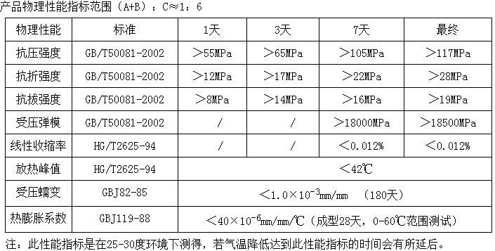 1、高強、早強:可提供大大高于水泥基材料的抗壓、粘結(jié)等力學性能,更高的早期強度。