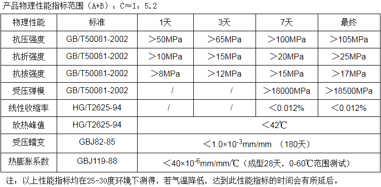 2、低放熱峰值:可提供長達(dá)120分鐘(25℃)的操作時間,適合大體積灌漿使用.