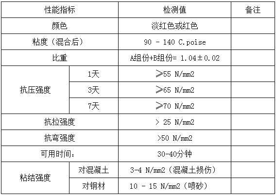 8、也可以作為結(jié)構(gòu)性修補(bǔ)混合物來修復(fù)受損的混凝土。作為復(fù)合灌漿修補(bǔ)混凝土中的錨定螺栓和錨狀物,并通過混合骨料后用于橋梁、甲板護(hù)沿的混合。
