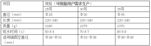 2.1 參考標(biāo)準(zhǔn) 鐵道部TB/T2093-2002《吸水式錨固包技術(shù)條件》。
