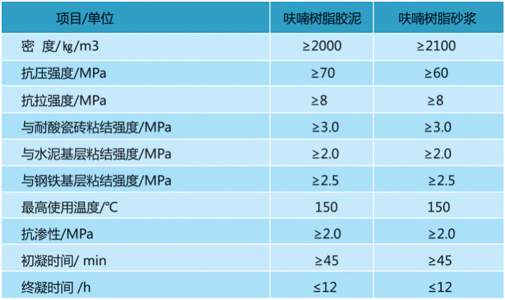 貯存在陰涼、通風(fēng)、干燥處,呋喃樹脂保質(zhì)期為六個月,膠泥粉、玻璃鋼粉、砂漿粉、混凝土粉保質(zhì)期為一年。